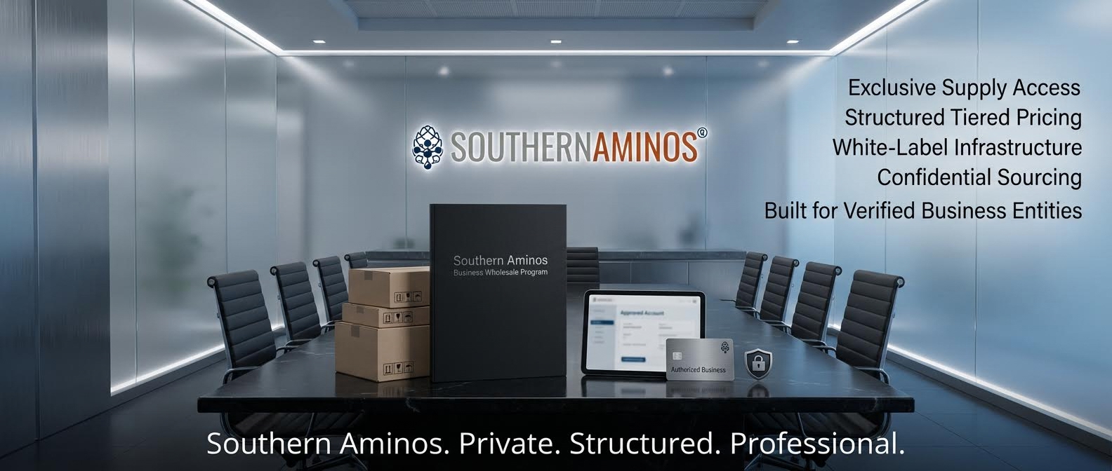 Southern Aminos offers a structured Business Wholesale Program for qualified companies seeking reliable, peptide supply with professional white-label flexibility. This program is designed exclusively for verified business entities only, this is not for individuals, and you must supply business license documentation.